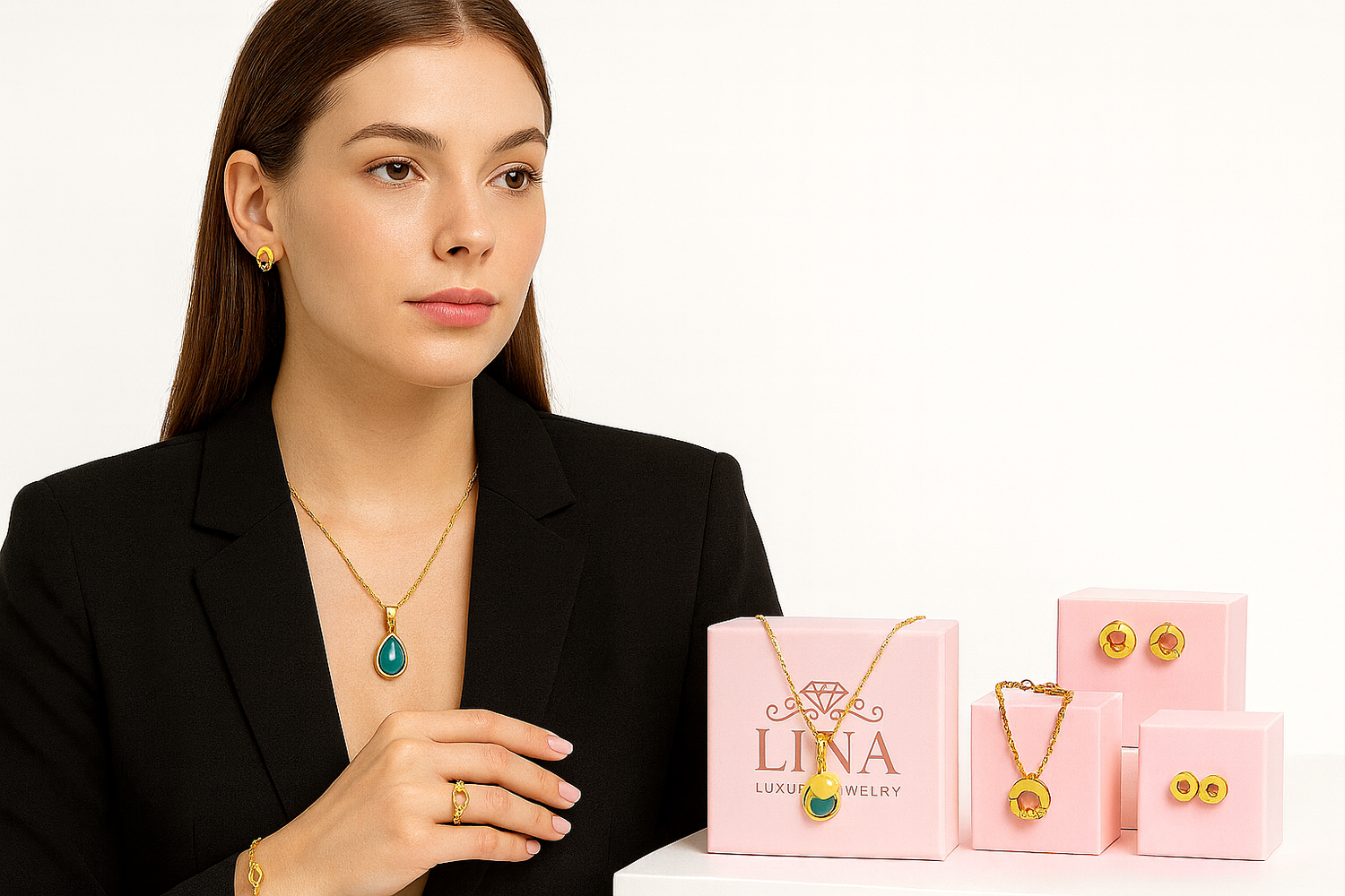 At Lina Luxury Jewelry, every piece is designed to combine style, durability, and comfort. Made with premium stainless steel, our jewelry is waterproof, tarnish-free, and hypoallergenic — so you can shine every day without worry.